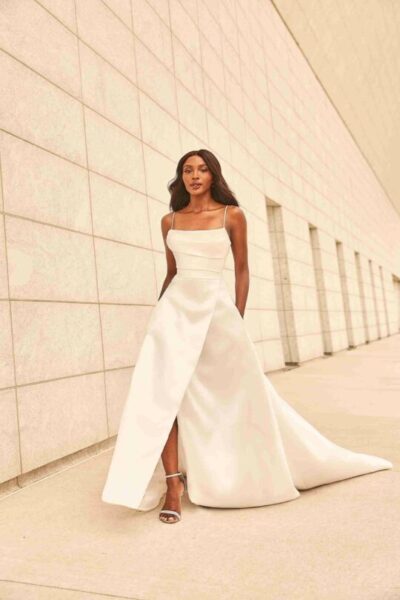 Browse our selection of 150+ wedding dresses at our London bridal boutiques, in both Maida Vale and South Kensington, perfect for brides in search of modern, boho or understated elegance. Our main collection features wedding dress samples available in size UK 12 or UK 14, which can typically fit brides ranging from UK 6 to UK 14. In addition, we have a separate Curve collection specifically designed for brides ranging from UK 16 to UK 22, ensuring we accommodate a variety of body types and sizes. Our collection of new wedding dresses typically ranges in price from £1000 to approximately £3000, depending on the specific design and details of each dress. For brides looking for a great deal, we also offer a selection of sample sale wedding dresses, starting from £400.